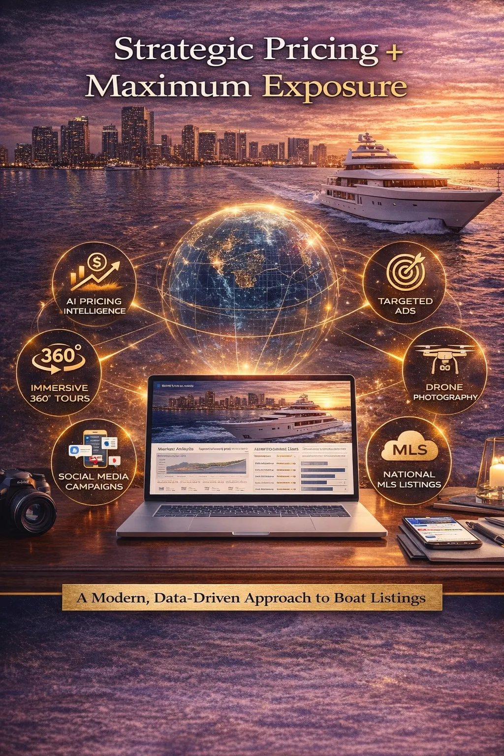 I utilize a cutting-edge, results-oriented approach to showcase your vessel and attract qualified buyers quickly and efficiently. By combining the perfect blend of strategic pricing and maximum exposure through advanced AI tools, targeted social media campaigns, immersive 360-degree virtual tours, high-quality drone photography, and more, I ensure your listing stands out in a crowded market. From preparation and marketing to negotiation and closing, I manage the entire process from start to finish. My goal is simple: to help you achieve the highest return on your investment without compromising your most valuable resource—your time. Let’s get your boat sold with precision, efficiency, and a modern touch.